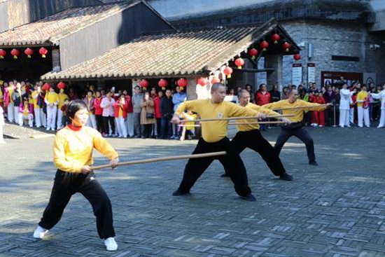 本次活动武功大比演有七大门派的非物质文化遗产项目,分别为:国家级非物质文化遗产太极拳,省级非物质文化遗产咏春拳、蔡李佛拳,市级非物质文化遗产南家拳、龙形拳、白眉拳、鹰爪拳。太极拳刚柔并济、行云流水,咏春拳立足实战、招式灵活,蔡李佛拳腰灵膊活飞砣劲、偏身出手快如风,南家拳刚柔兼备、疾极灵变,龙形拳以意导形、攻守合一,白眉拳短小精悍、攻防同体,鹰爪拳进则急如闪电、退则快如飘风。各大门派的佛山功夫精彩的表演让人赞不绝口,现场掌声连连。