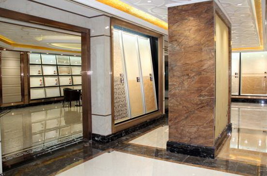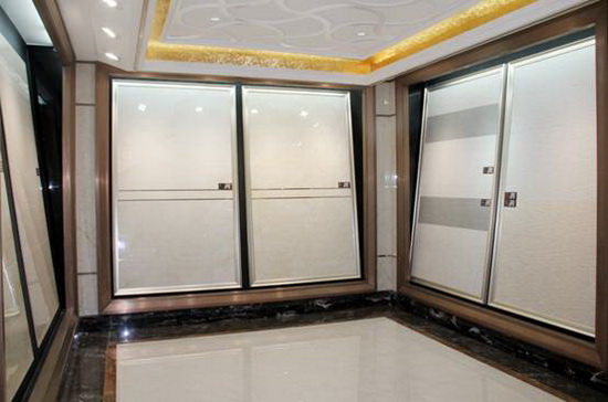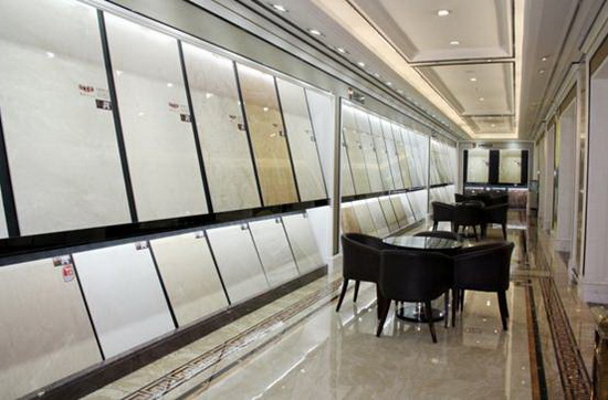 91免费版视频大理石全抛釉陶瓷砖900mmX900mm斜板展示区