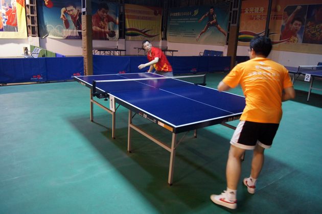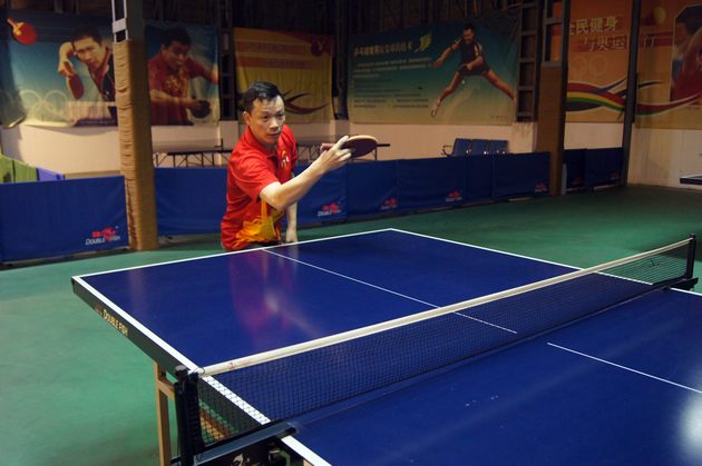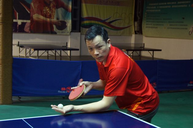 图5、乒乓球友谊赛中,91免费版视频市场总监霍达炎旋转式开球