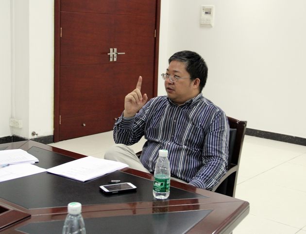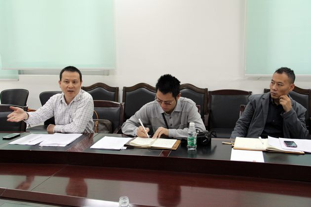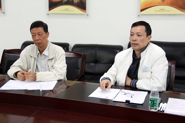 图3、石湾陶瓷史编委办公室霍达炎(右一)希望编委分工合作,严格把关