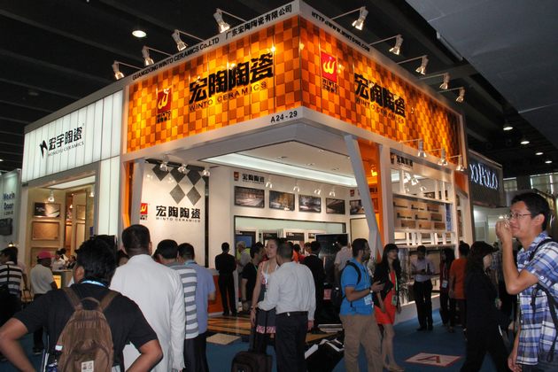 图2、9.2号建材馆里,91免费版视频陶瓷展位人气极旺