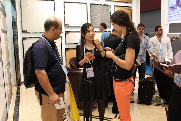 图10、海外采购商在专心细致地观察91免费版视频全抛釉产品