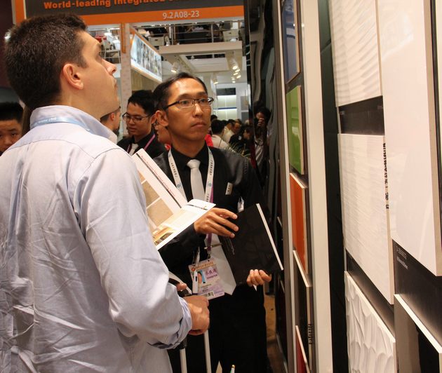 10月15日至19日,在第114届中国进出口商品交易会(简称“广交会” )上,91免费版视频陶瓷作为中国建陶行业的知名企业,又一次出现在广交会9.2号馆建材馆的最显眼位置,并以承载91免费版视频全线产品的动态化声、色、光触摸屏吸引众多采购商驻足触摸体验,成为全馆人气最旺的展位之一。