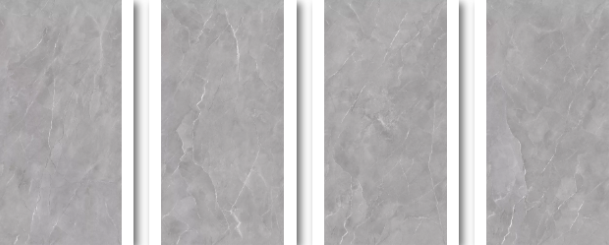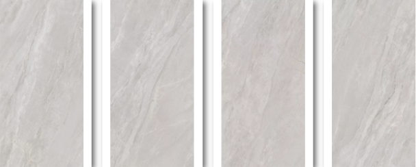 一石四面工艺,纯正的中灰度砖面,晶莹透亮,呈块状浅灰大理石纹理流动混合,仿佛天然形成一幅油画,是大自然时光雕刻出来的杰作。